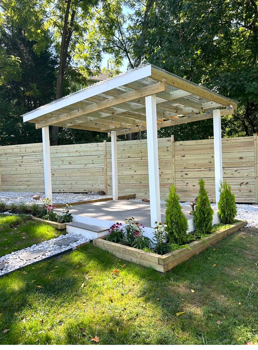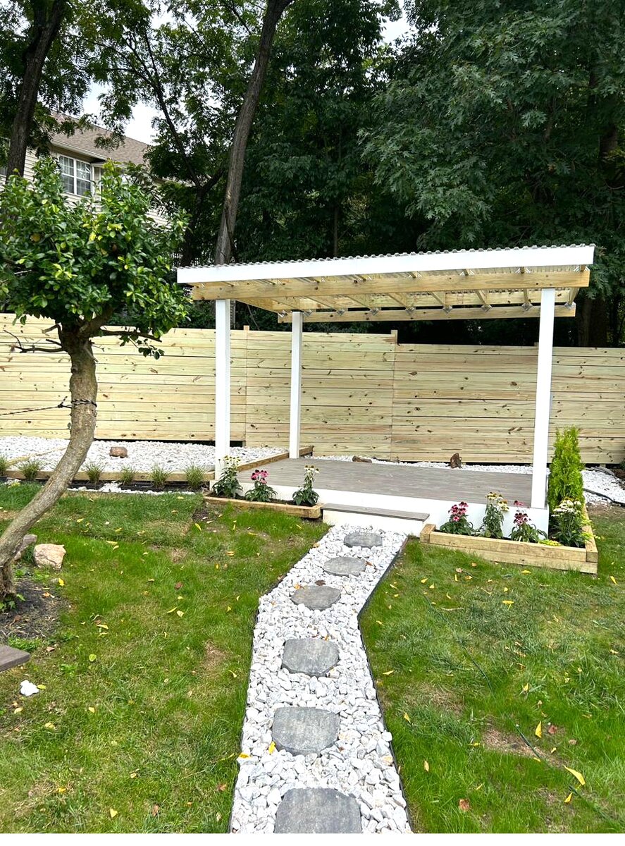 Transform your backyard into an outdoor living space with a custom-built pergola. We build freestanding and attached pergolas using pressure-treated lumber, with options for polycarbonate roofing, composite decking, privacy fencing, and landscaping. Our pergola builds include full planning, construction, and finishing — ready for entertaining the day we leave.